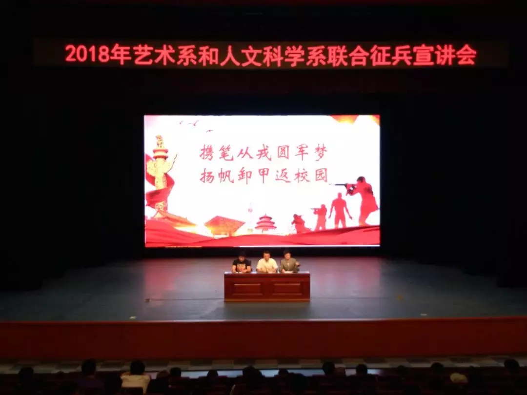 为加强征兵政策宣传,做好大学生应征入伍工作,5月30日下午,艺术系、人文科学系在音乐厅联合举办了以“携笔从戎圆军梦,扬帆卸甲返校园”为主题征兵宣讲会。宣讲会由人文科学系党总支书记徐雷、艺术系党总支副书记冯伟担任主讲人,会议由艺术系团总支书记刘鑫主持,艺术系和人文科学系500余名学生参加了此次宣讲会。