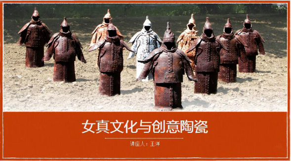 讲座伊始,王洋教授以创意陶瓷视角,结合陶艺创作《八旗金甲》、《冰雪八旗》系列作品,讲述陶瓷艺术创作、创意陶瓷、文创陶瓷与文化内核之间的关系,以此为基础,结合图片和实物展示从《八旗》系列陶艺创作到《八旗》系列文创衍生品,提出黑龙江省地域特色陶瓷创意设计和文创产品研发的新思路和新方向。