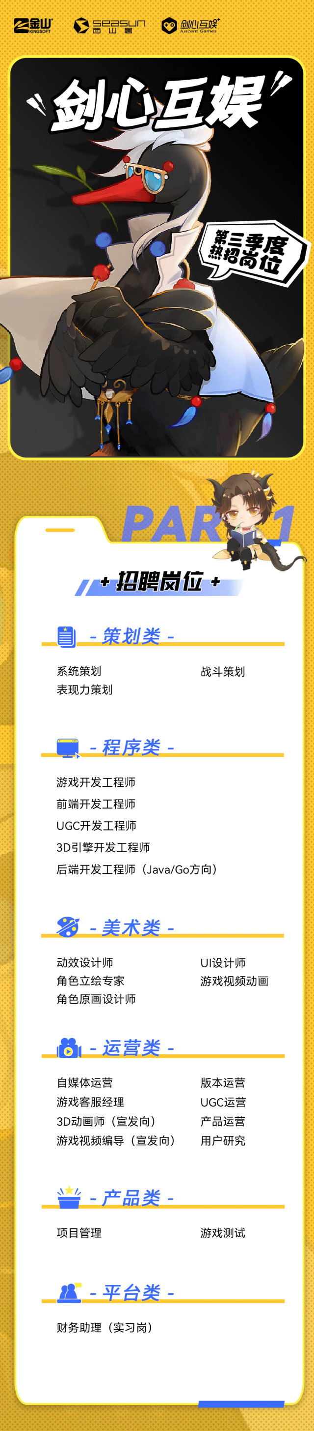 剑心互娱第三季度热招,美术设计岗位招聘!