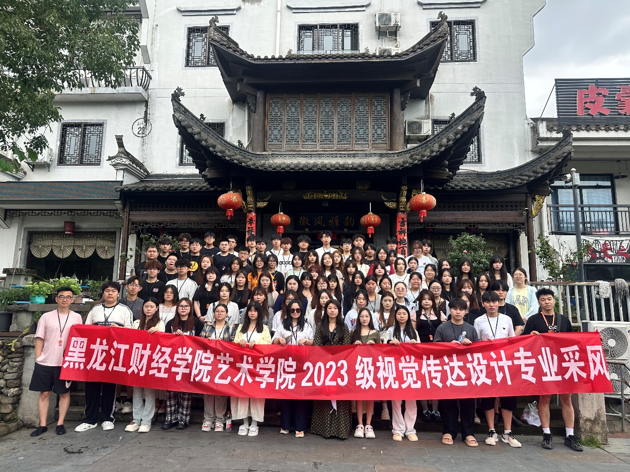 黑龙江财经学院艺术学院 2023级视觉传达设计专业,于 2025年 6月 26日至 7月 4日,在李思涵、沈正军、关博文、权水四位专业教师的带领下,赴安徽黄山黟县宏村开展专业采风活动,取得圆满成功。此次活动将社会实践与专业教育深度融合,引导学生走出课堂、走入生活、走近文化,在沉浸式体验中拓宽艺术视野,汲取传统文化养分,为后续设计创作积累丰富素材。